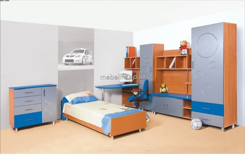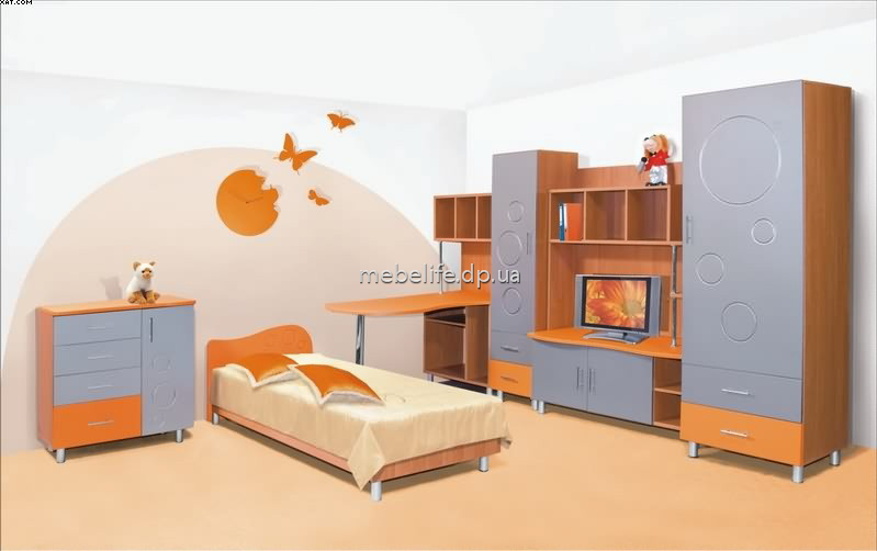 В комплекте: комод-бюджет, кровать, стол письменный, тумба ТВ, шкаф.